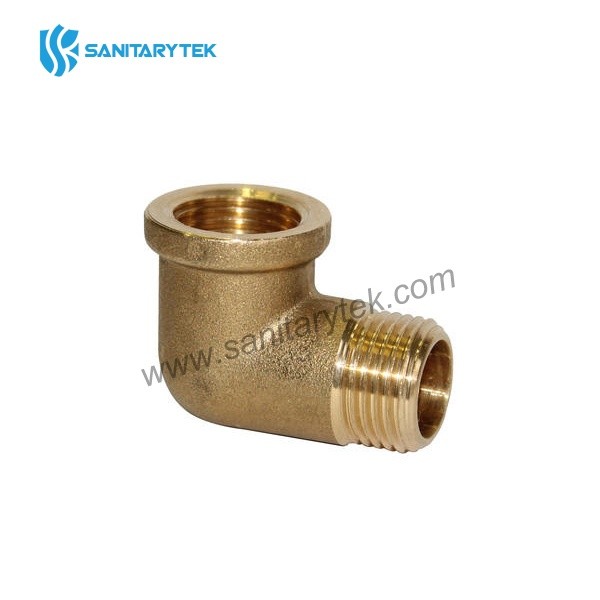 This elbow male-female is a pipe fitting made of brass that allows a change of 90° in the direction of the piping. It is a cylinder-shaped bent 90° with two openings of equal size.