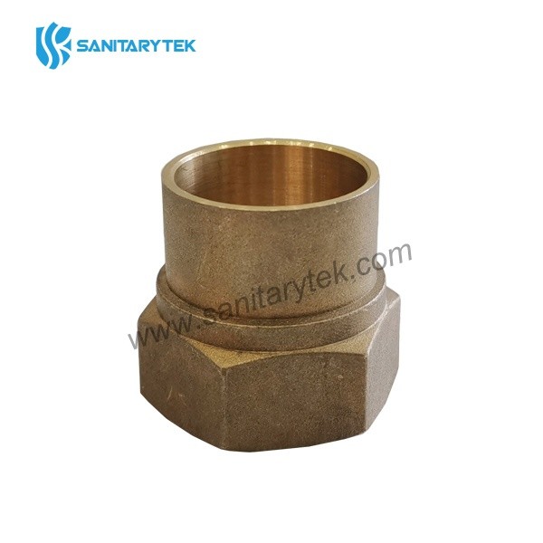 Brass straight female connector to copper. The straight coupler made in brass, with one end female threaded and the other end for copper pipe welding.