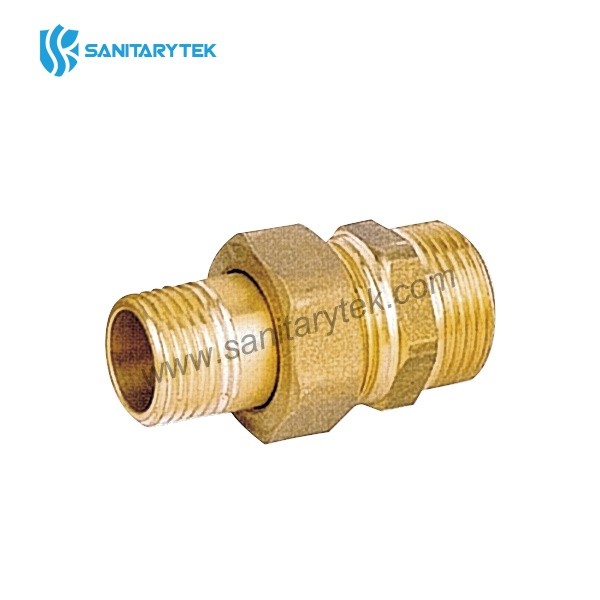 Brass straight union male-male, threaded fitting for removable connection of threaded pipe and tube, with sphero-conical joint. The brass straight male-male is a plumbing fitting made of high-quality brass.
