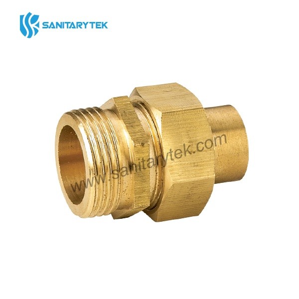 Brass male union to copper. Manufactured from high quality brass. It is a brass fitting that allows straight union between a female threaded end pipe and a copper pipe for welding.