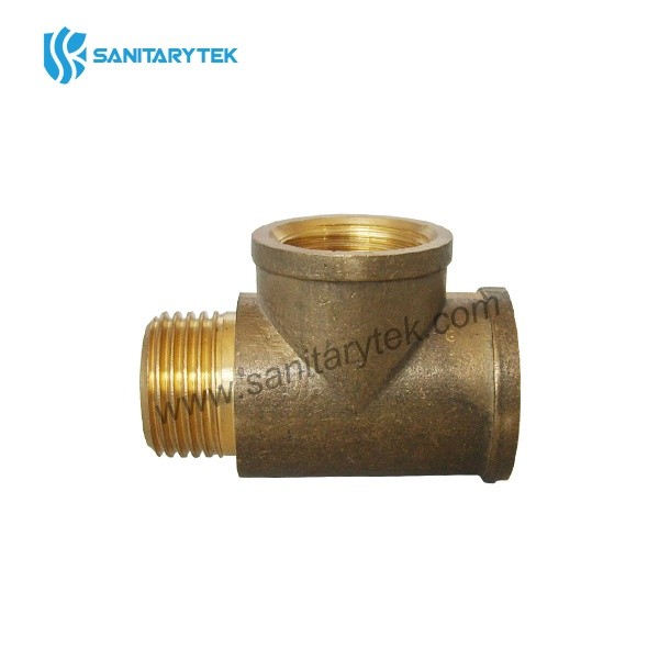 Brass tee female, female, male yellow