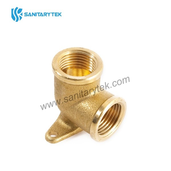 Brass elbow female-female with wallplate connection with 2 holes for fixed mounting
