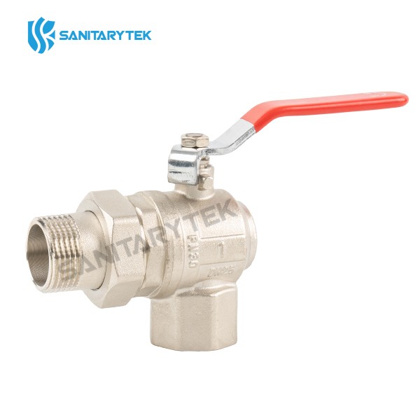 Full bore angle ball valve MF with union pipe and flat steel handle