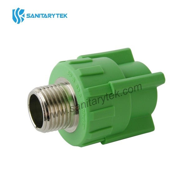 PPR Male adaptor is used for a straight transition from polypropylene pipe installation to an female thread metal fitting or valve.