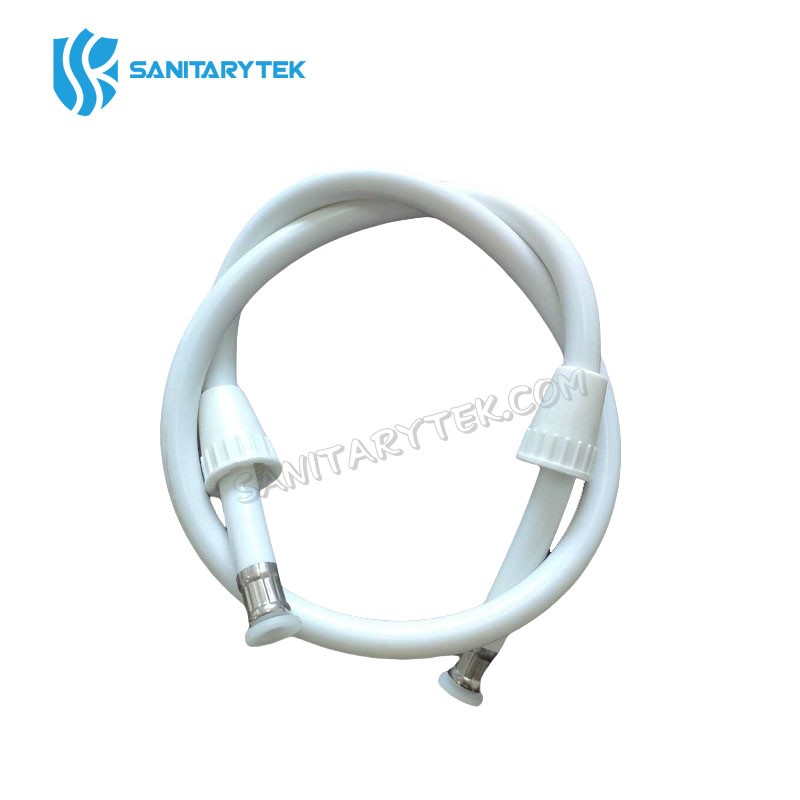 • This shower hose is made of smooth PVC. It has a universal thread which makes it possible to adapt to all shower equipment. This hose has a nut at each end: a knurled nut and a conical nut.